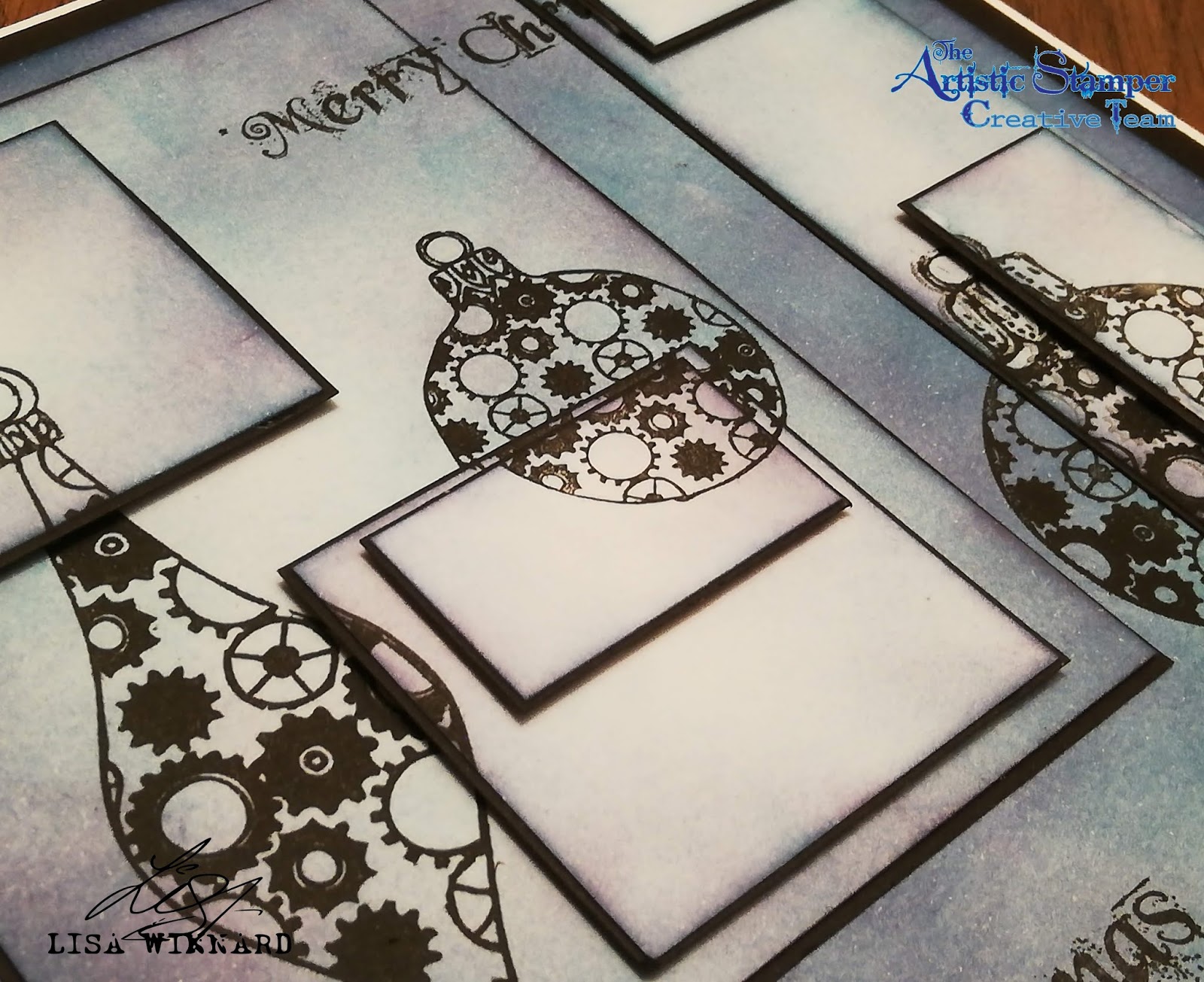 I placed all the different card pieces in the correct places then stamped the Tick Tock Christmas Baubles on to the card.